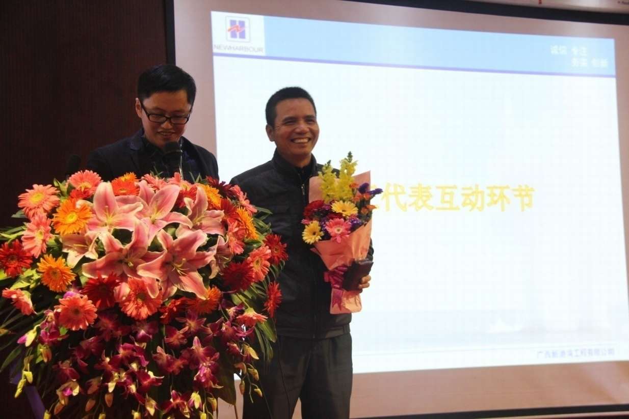 2016年1月21-22日,廣西新港灣工程有限公司2015年度年終工作會(huì )議在南寧隆重召開(kāi),來(lái)自全國各地的項目經(jīng)理、船組經(jīng)理、優(yōu)秀員工代表與總部員工等120余人參加本次會(huì )議,出席會(huì )議的公司領(lǐng)導有:寧旭展、汪金良、姚方明、廖烈宏、肖建國、胡鑫瑞、馬蓉、陸少鋒。