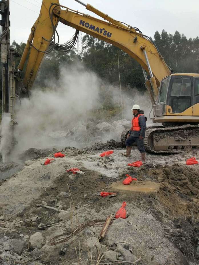 緊迫的工期和捍衛公司品牌的決心讓柳南項目部全體同仁不敢有半點(diǎn)的懈怠。陸爆組的全體同仁更是冒著(zhù)冰冷刺骨的大雨進(jìn)行裝藥、接線(xiàn)、覆蓋作業(yè)。負責指揮陸爆鉆孔和現場(chǎng)施工的項目部技術(shù)人員淡榮新、閉振波、林偉楊、李辰清的臉、手、耳也早已被凜冽的北風(fēng)刮出了一道道皸裂。項目部上下各崗位都在為工期目標的達成,做出自己的貢獻。