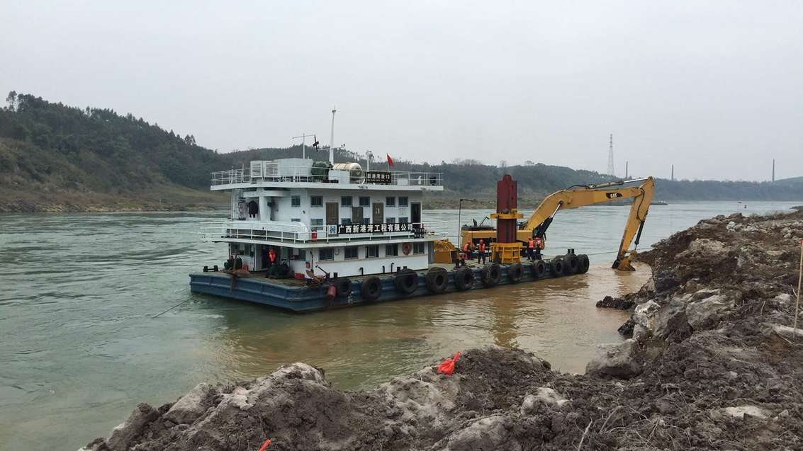 “爆竹聲中一歲除,春風(fēng)送暖入屠蘇?!贝汗澅臼且患覉F聚、濟濟一堂的日子。然而在2016年春節期間,我司來(lái)賓柳州(鹿寨)至南寧高速公路改擴建工程紅水河特大橋橋區航道整治及助航標志工程№HD1標項目(以下簡(jiǎn)稱(chēng)柳南項目)施工建設的第一線(xiàn)。新港灣33號船組,新港灣浚13船組,新港灣浚11船組,陸上爆破組及項目經(jīng)理部全體同仁在項目經(jīng)理廖少銳的率領(lǐng)下,將無(wú)怨無(wú)悔地堅守在各自的崗位上,用勤勞的雙手和堅韌的品質(zhì)躬身踐行著(zhù)公司“優(yōu)質(zhì)安全,高效服務(wù)”的宗旨。力爭達成2016年4月10日完成交工的工期目標!