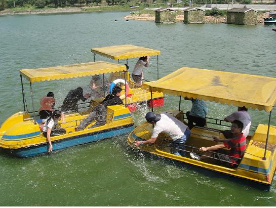 游戲的規則是:以最短時(shí)間到達指定地點(diǎn)的一隊獲勝,但游戲在進(jìn)行到一半的時(shí)候他們好像都改變了作戰策列,打起了水戰。