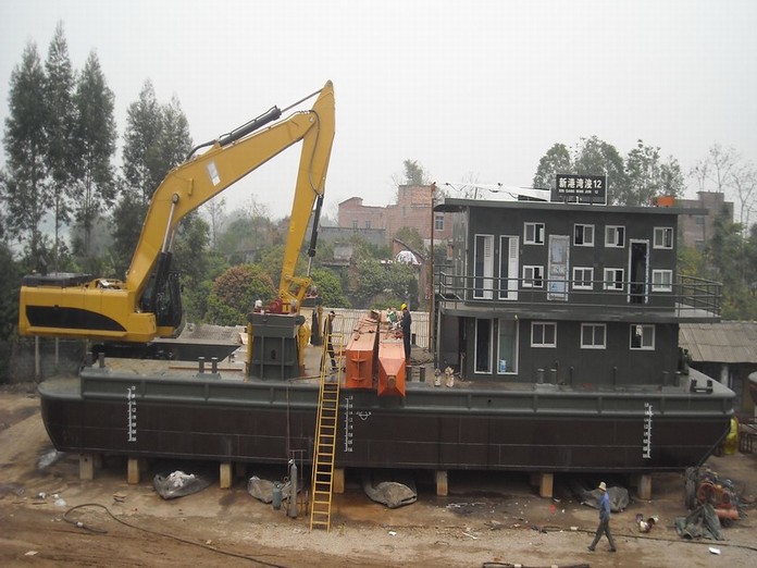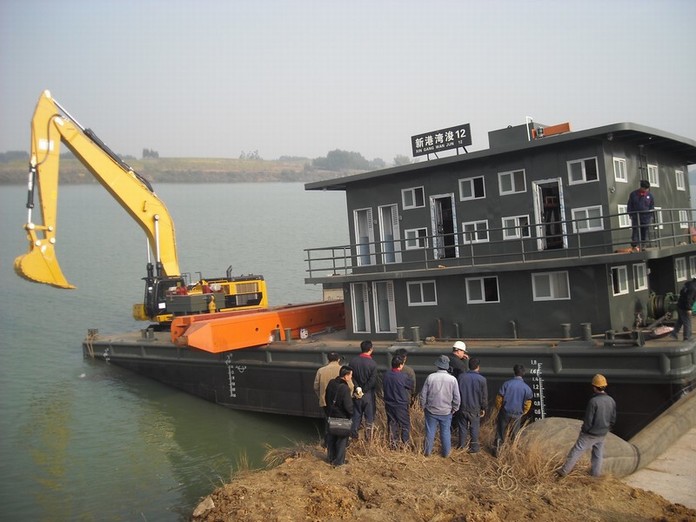 2012年元月10日,由廣西新港灣工程有限公司自行設計的反鏟式挖泥船“新港灣浚12”順利下水。該挖泥船的船總長(cháng):28.6米、船寬:10.5米、船型深:2.2米、船吃水:1.4米、船上裝配卡特CAT390D挖掘機,功率420KW,斗容4立方米,最大挖深10米。迄今為止,是廣西最大的反鏟式挖泥船。