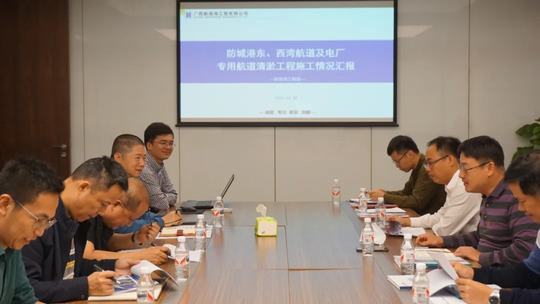 座談會(huì )上,雙方圍繞西部陸海新通道門(mén)戶(hù)港建設,特別是自治區重點(diǎn)關(guān)注項目之一的防城港東西灣航道疏浚項目施工建設進(jìn)行了深入交流。在認真聽(tīng)取了項目工程情況介紹后,北港股份工程管理部總經(jīng)理賀立、副總經(jīng)理竇廣元結合項目實(shí)際,就如何推進(jìn)項目管理、確保工程進(jìn)度提出了中肯的意見(jiàn)及可取的建議。公司總經(jīng)理肖建國對北港股份工程管理部給予項目前期建設的大力支持表示感謝,同時(shí)要求項目部提高認識,加強工程管理,保質(zhì)保量按期完成項目施工。